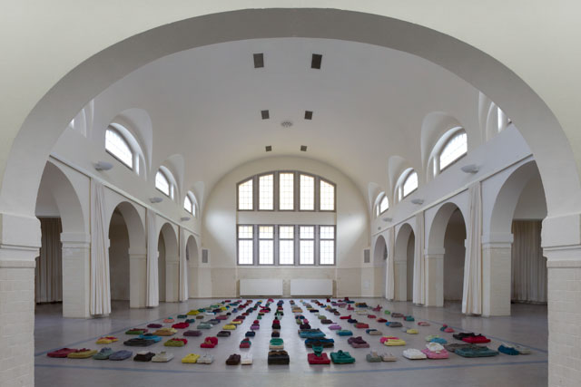 Das Duo Pepper/Woll klingt wie eine smarte Erfindung für den Kunstmarkt, ist es aber nicht. Mark Pepper und Thomas Woll lernten sich auf der Kunstakademie in Düsseldorf kennen und arbeiten seit einigen Jahren auch zusammen als das Duo Pepper/Woll. Der erste ist trainierter Architekt, der sich auf der Akademie zum Künstler entwickelt hat, der zweite ist Bildhauer und als Duo ergänzen sich Künstler und Architekt vor allem natürlich auch im urbanen Umfeld, das sie kritisch hinterfragen und durch eigenwillige Interventionen zur Diskussion stellen. Im Kunstverein Schwimmhalle Schloss Plön haben wir gerade sehr erfolgreich die Arbeit „300“ von Pepper/Woll gezeigt, die eine kritische Auseinandersetzung mit den Produktionsbedingungen unserer Zeit in ironischer Brechung durch das uralte handwerkliche Verfahren der Pappmaché Abformungen zur Anschauung bringt, eine eindrucksvolle Arbeit, die wir als Bodenarbeit in der Fläche des ehemaligen Schwimmbeckens eingerichtet hatten, die sowohl an die Arbeiten eines Raffael Rheinsberg denken lassen, als auch an die soft sculptures von Claes Oldenburg.